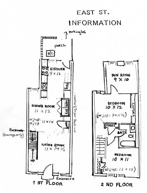 The row style buildings of East Street were built in the 1930's. Valley Mortgage Corp. owns two of the three buildings - for a total of 20 units. In the mid to late 1990's, Valley Mortgage performed extensive remodeling on both of their buildings to include the following amenities: wall-to-wall carpet, modern kitchens, laundry facilities, gas heat and central air-conditioning. Our remodeled buildings embody the architecture of the 1930's as well as the modern single-family style living of today. A fifty dollar water allowance is included in the monthly rent.